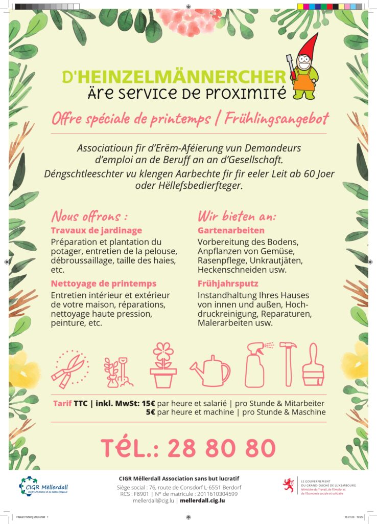 Nei Tariffer beim Service de Proximité fir d'Fréijoer. Nouveaux tarifs pour le service de proximité pour le printemps.