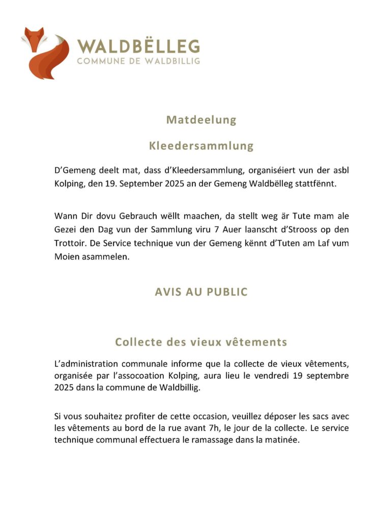 Kleedersammlung – Collecte des vieux vêtements 2025